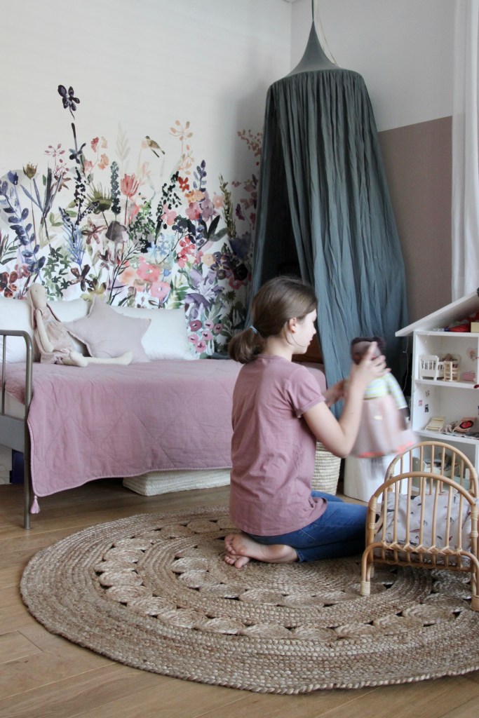 Für das Zimmer meiner Tochter habe ich mich in die wahnsinnig schöne Fototapete „May Meadow“ verguckt. Diese atemberaubende Blumenwiese in zarten Aquarelltönen würde perfekt zum gewünschten Farbschema passen. Da meine Tochter auch noch so gerne Aquarellbilder malt, hätte es nicht besser passen können.