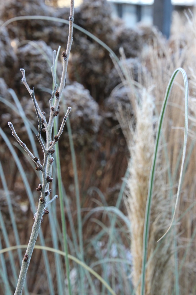 Auch wenn der Garten im Winter doch sehr kahl aussieht, wenn man morgens wach wird, die Sonne scheint und der ganze Garten mit Raufreif überzogen ist, dann hat das auch was schönes.