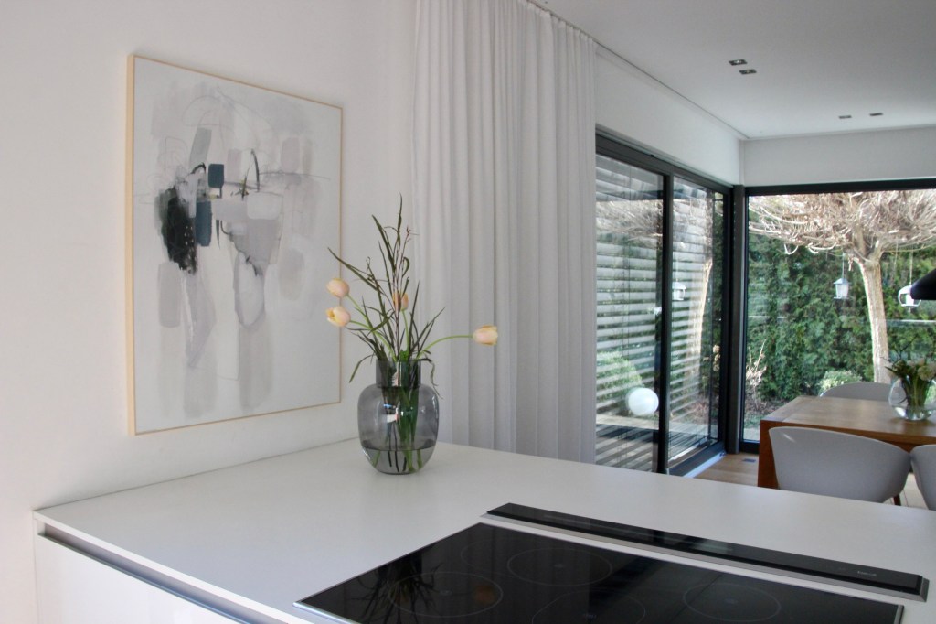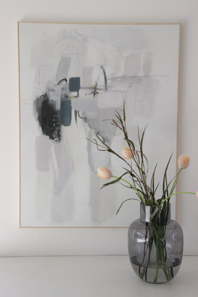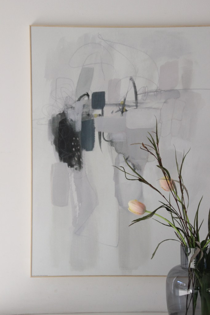 Bei dem Bild handelt es sich um abstrakte Malerei. Die Farben sind sehr dezent gehalten.