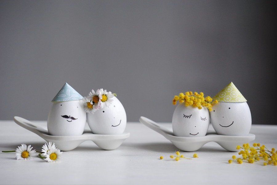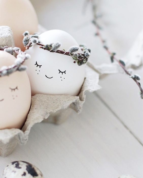 Ostereier lassen sich ganz bezaubernd mit Gesichtern verzieren. Dann noch eine Mütze oder einen kleinen Blumenkranz aufgesetzt und fertig ist ein absolut goldiges Osterei.