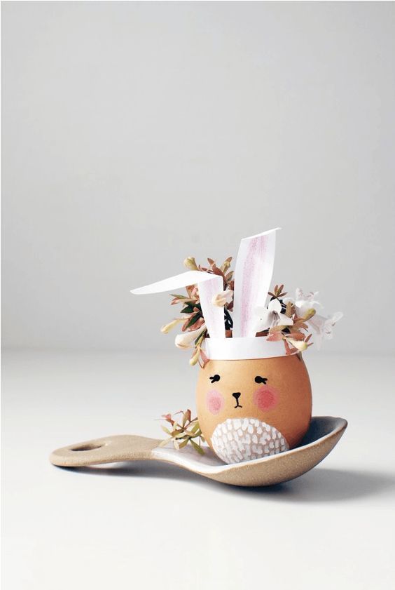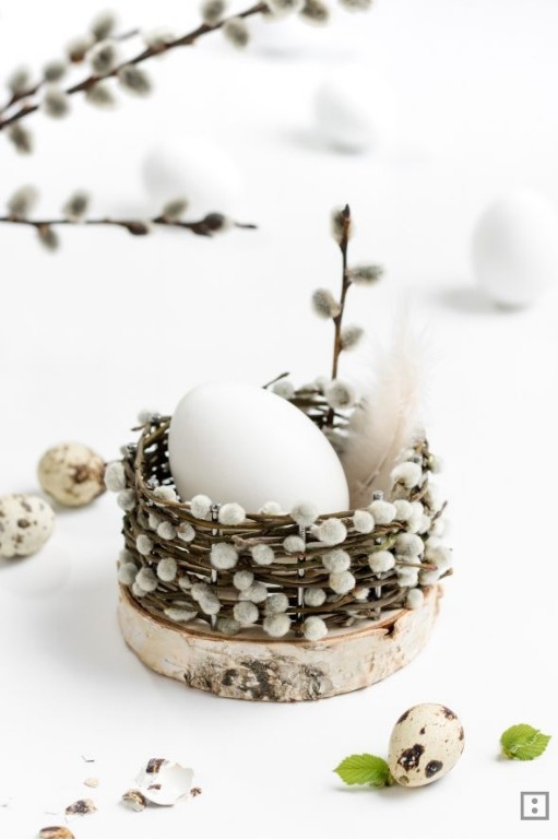 Ostereier können aber auch toll daher kommen, ganz ohne Farbe und Bemalung. Hier wird das Osterei einfach nett in einem Körbchen / Nest dekoriert oder bekommt Hasenohren aufgesetzt.