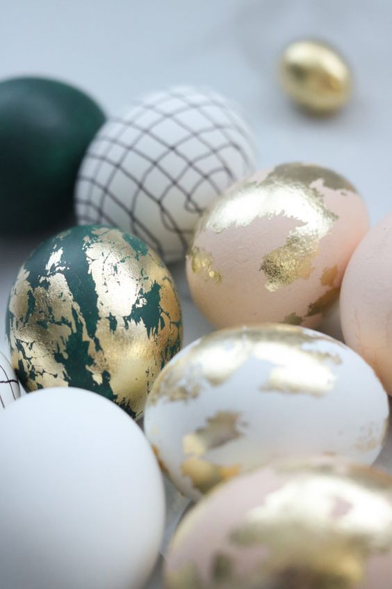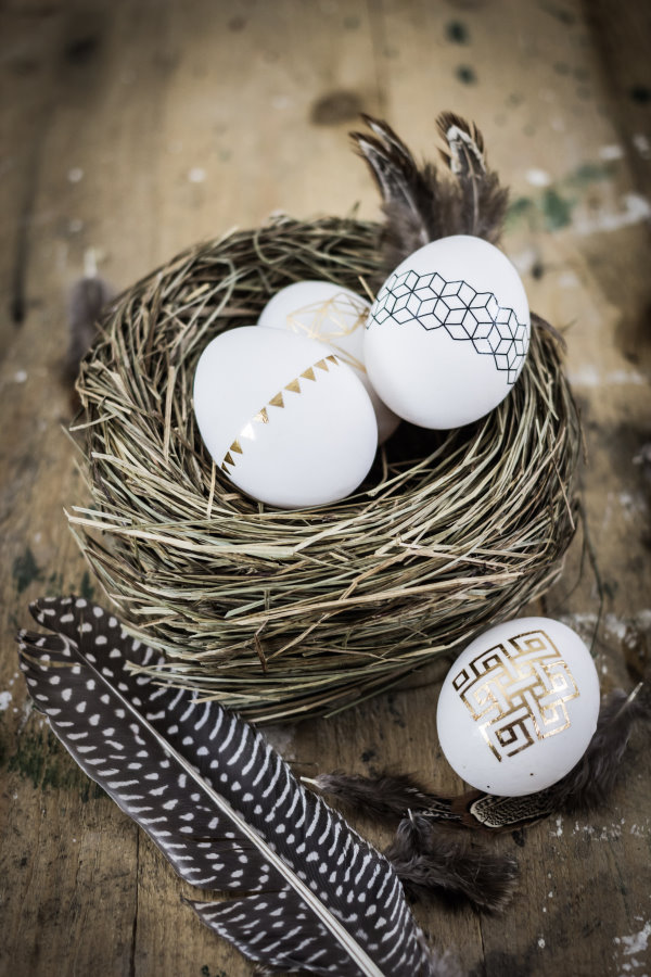 Ein toller Hingucker sind gefärbte Ostereier, die dann noch mit Blattgold verziert werden. Die Eier bekommen dadurch einen sehr edlen Look.