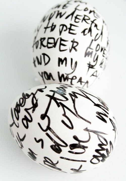 Man kann Ostereier aber auch sehr schön mit unterschiedlichen Mustern oder Texten verschönern. Ob mit Tattoos oder mit dem Stift verziert … ganz gleich, es sieht toll aus.