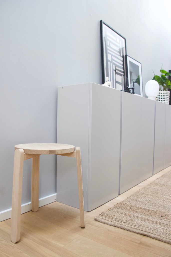 Der Hocker im Flur war mir sehr wichtig, da ich oben die Wäsche zusammenlege und sortiere. Ein kleines Plätzchen zum kurzen Pausieren finde ich sehr angenehm. Wir hatten dort vorher eine lange Sitzbank zu stehen, die wurde liebend gerne zum Sitzen benutzt. Aber auch eine große Vase mit Zweigen oder Blumen macht sich auf einem Hocker sehr gut. Der Nomad Hocker von Skagerak ist elegant und schlicht und benötigt wenig Platz. Somit perfekt für den schmalen Flur.