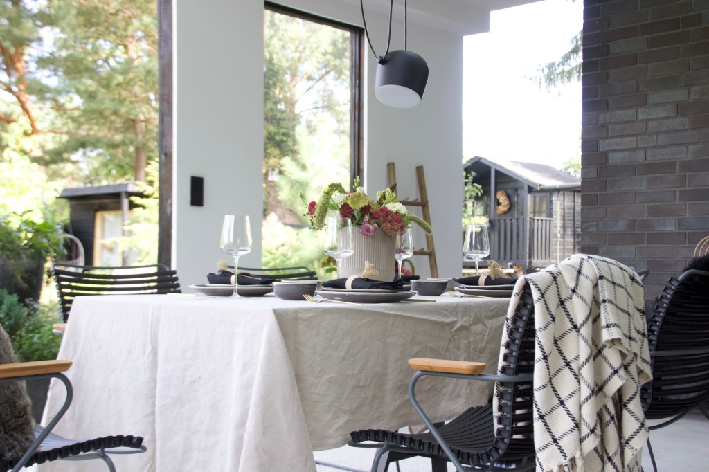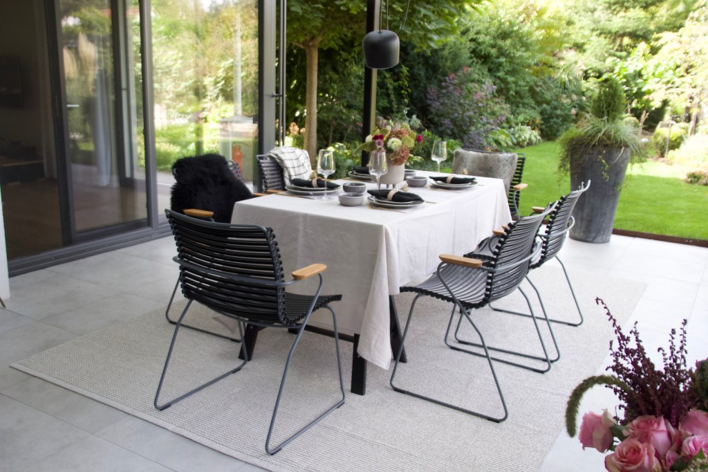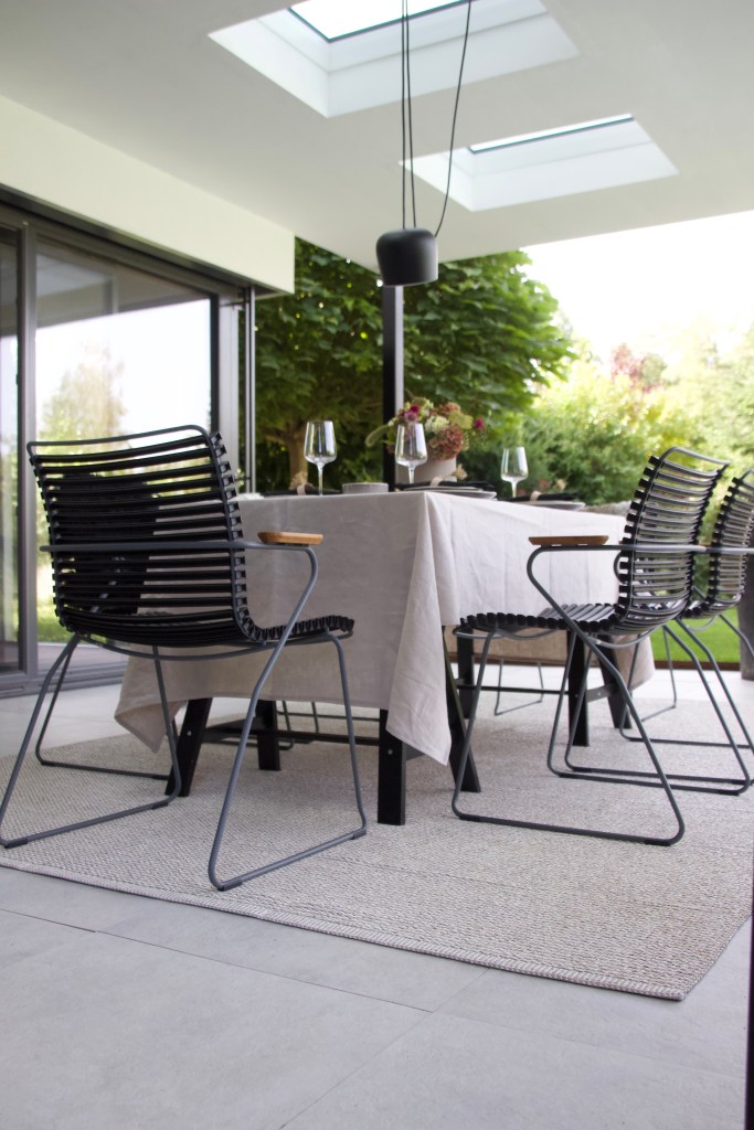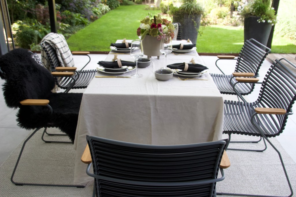 Eine neue Terrasse braucht natürlich auch neue Gartenmöbel. Bisher standen dort ein selbstgebauter Tisch aus alten Holzdielen, der leider schon ziemlich verwittert war und Gartenstühle, die mittlerweile auch das Zeitliche gesegnet hatten. In unserem letzten Dänemark Urlaub haben wir uns in die Gartenmöbel von Houe verliebt und kurzerhand die Gartenstühle „Click“ und den Tisch „Sketch“ für die Terrasse bestellt.