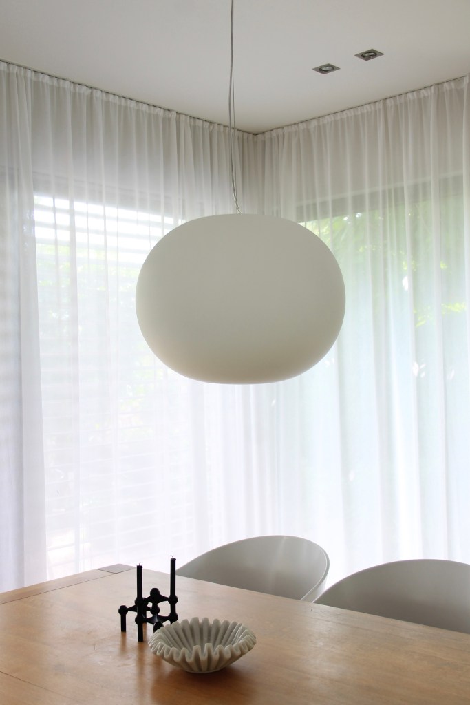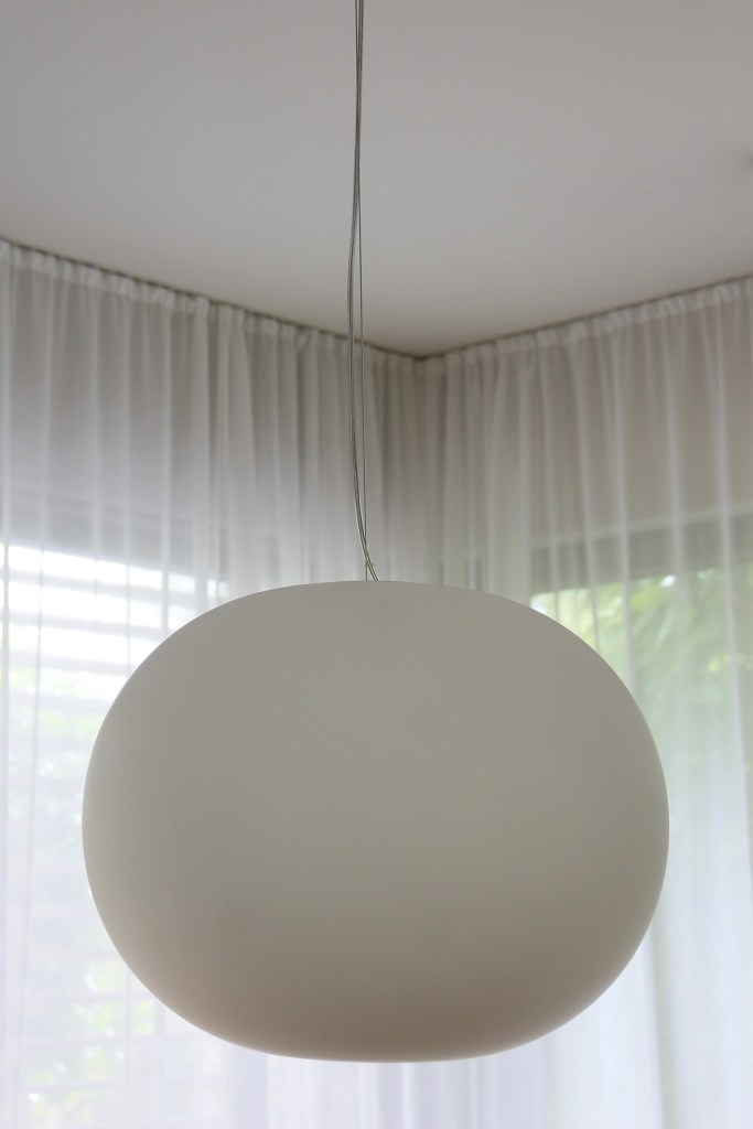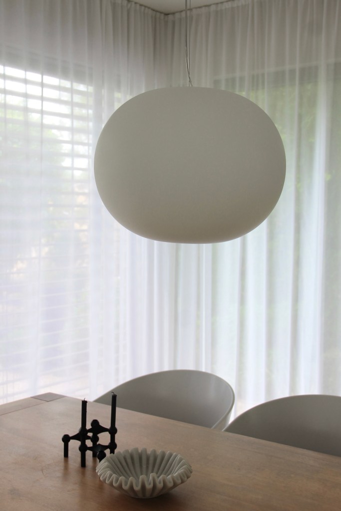 Unsere neue Hängeleuchte GLO-BALL von FLOS konnten wir durch das lange Kabel individuell einkürzen und unseren Verhältnissen anpassen.