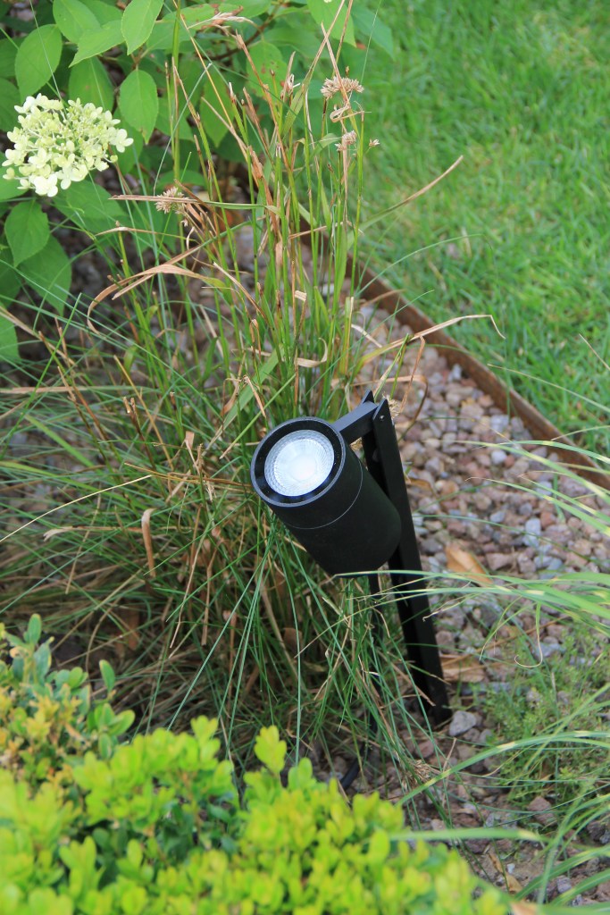 Wir haben uns für den Bodenstrahler „piek“ in der Farbe deep black RAL 9005 entschieden. Bei Tage ist er ein echter Hingucker und Nachts eine zuverlässige Lichtquelle und strahlt die Hochstammbäume wunderschön an.