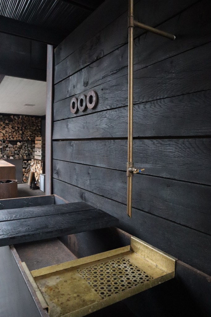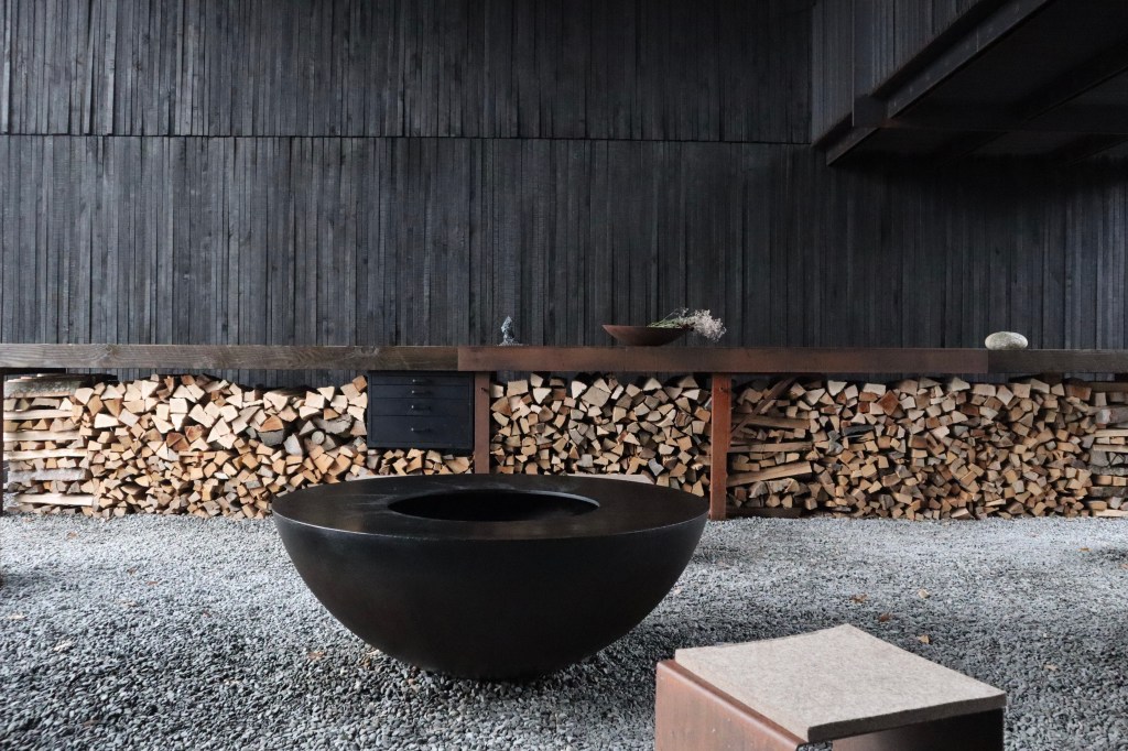 Dem Original Feuerring wurde ein Raum gegeben, in welchem dieser sich ideal präsentiert und entfaltet. Der Raum ist offen und durchlässig, so fliesst die Umgebung in den Baukörper quasi hinein und umgekehrt. Ein tunnelartiger Baukörper öffnet sich gegen das Wasser des gegenüberliegenden Zugersees und schafft durch seine skulpturale Ästhetik und seine Materialität den Bezug zur Formensprache des Feuerrings. Das lodernde Feuer initiiert soziale Interaktionen mit Besuchern und Nachbarschaft; dadurch wird das Atelier zu einem Erlebnisort.