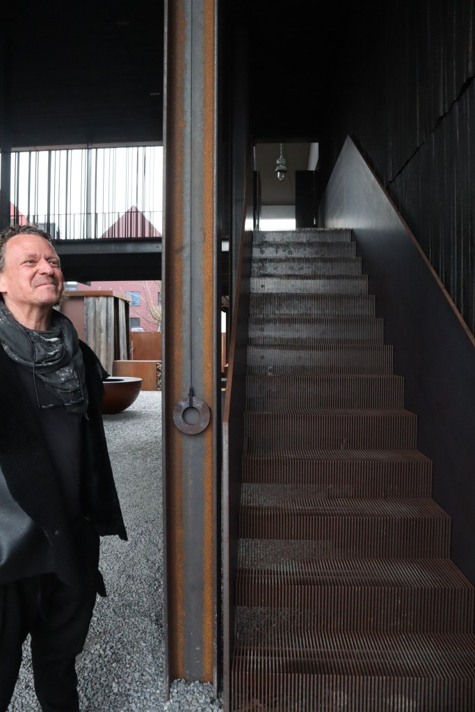 Es passt überhaupt alles zusammen, vom Design des Feuerrings, dem sich einfügendem Atelier, über kleine aber feine Details, wie dem symbolischen Akt des brennens eines kleinen Feuerrings als Anhänger. Selbst die Katze von Andreas passt perfekt in die Umgebung.