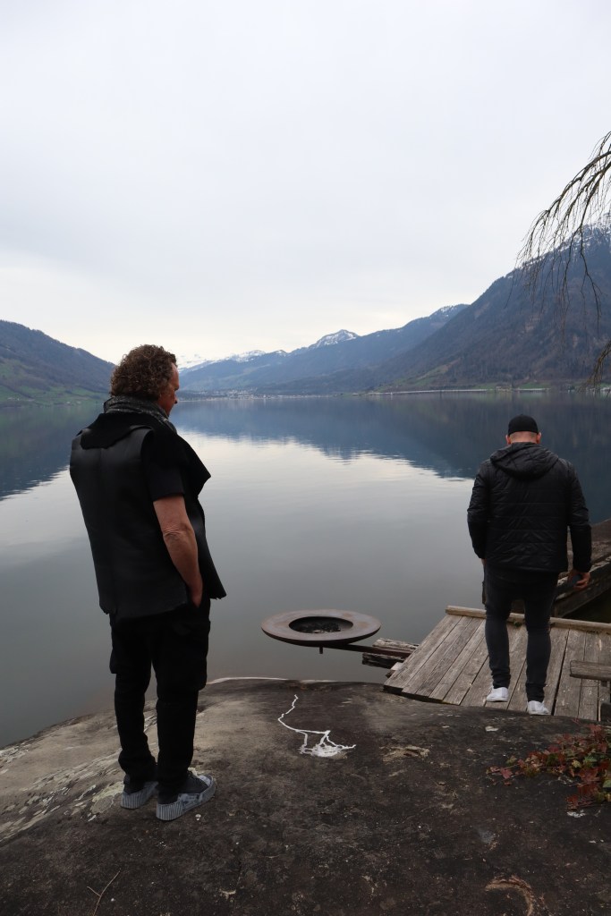 Nach unserem Rundgang fuhr Andreas mit uns zu seinem Elternhaus. Hier liegt der Ursprung seines Schaffens, seiner Kreativität. Eine Kindheit in der Natur vor traumhafter Kulisse, das Massiv der Rigi vor Augen, das klare Wasser des Zugersees – zugänglich über den rauhen Sandsteinfels am Elternhaus, den schon Goethe passierte.